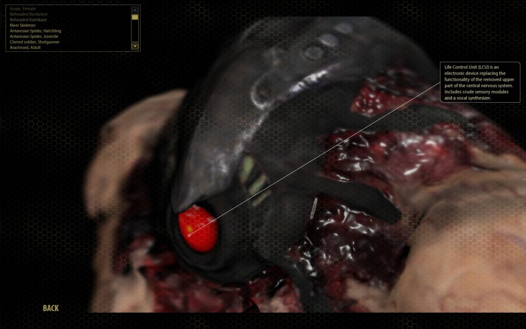 Enemies include one-eyed brutes with huge hulking arms that they use to run faster, headless men with bombs strapped to their hands screaming as they run toward you, and the leaping skeletons of some alien animal.