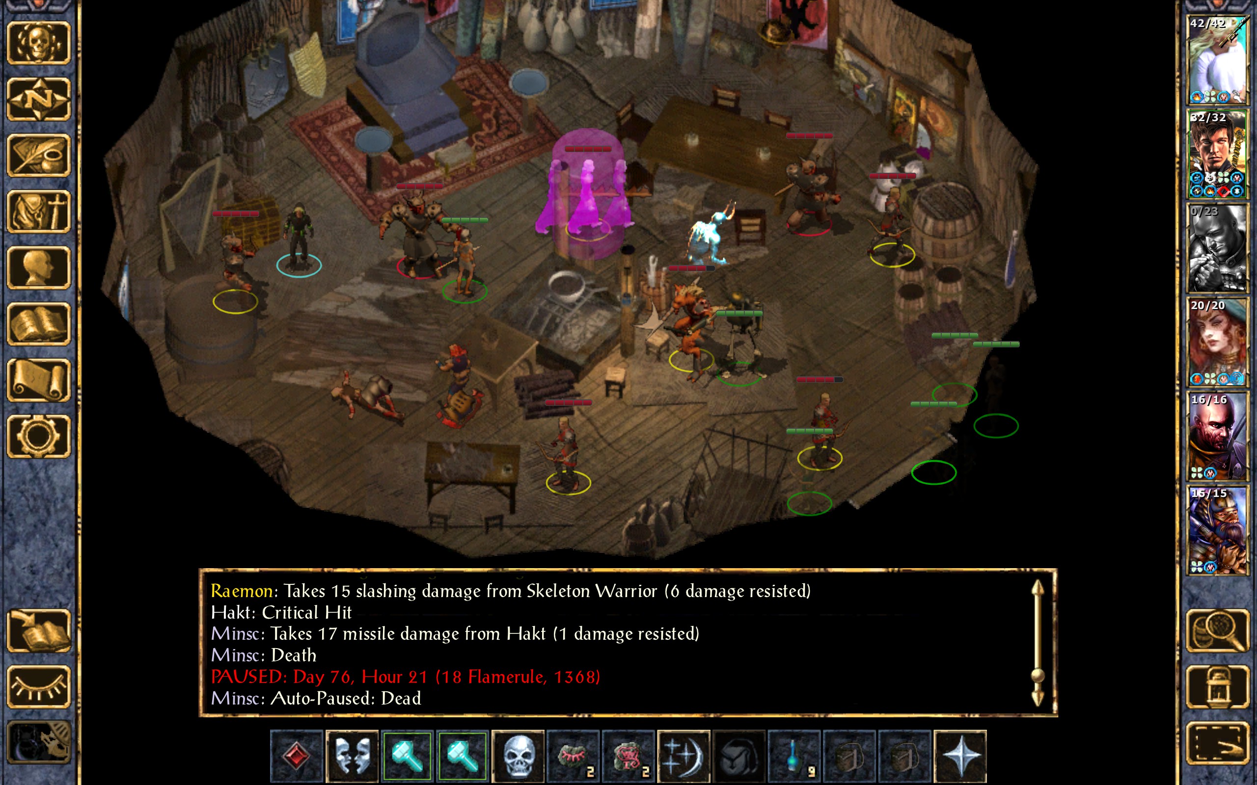 Rasaad finds Boo scuttling around Minsc’s corpse. He picks up the rodent and holds onto it until we can get Minsc to a priest. I let cat out of the bag again, and as soon as I do he spots a trap.