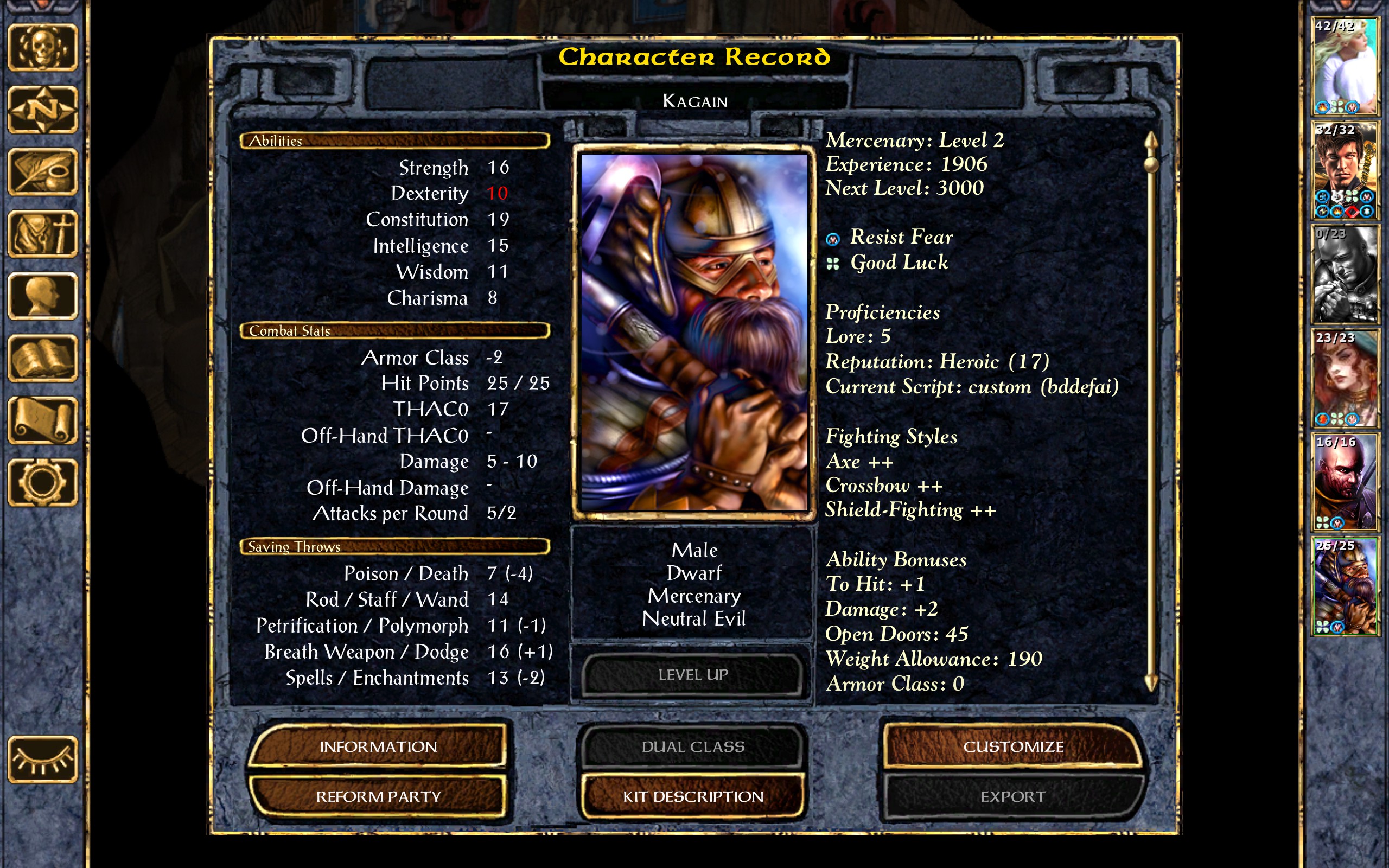 His Breath Weapon saving throw is improved, his Death saving throw improves by two points, and his Wand and Spells saving throws improve by three points. He also gets and increased THAC0, 10 more Hit Points, and one more point of Lore.