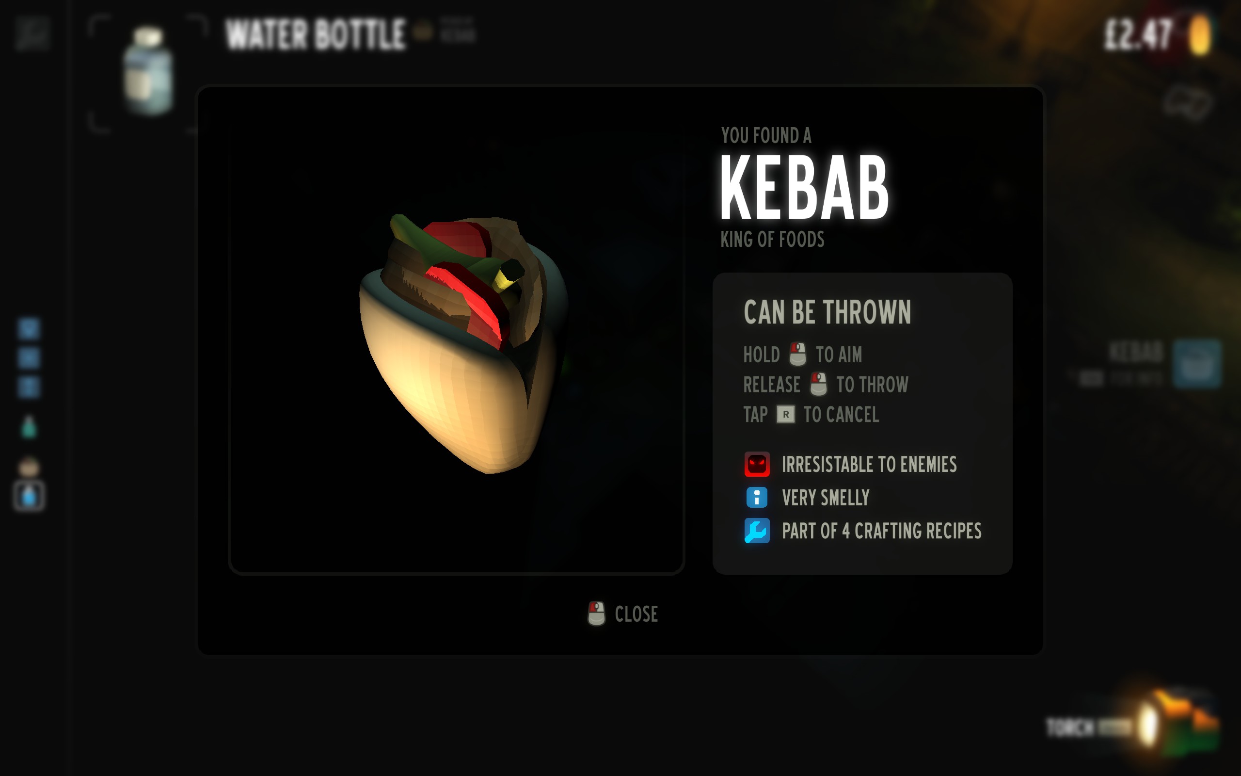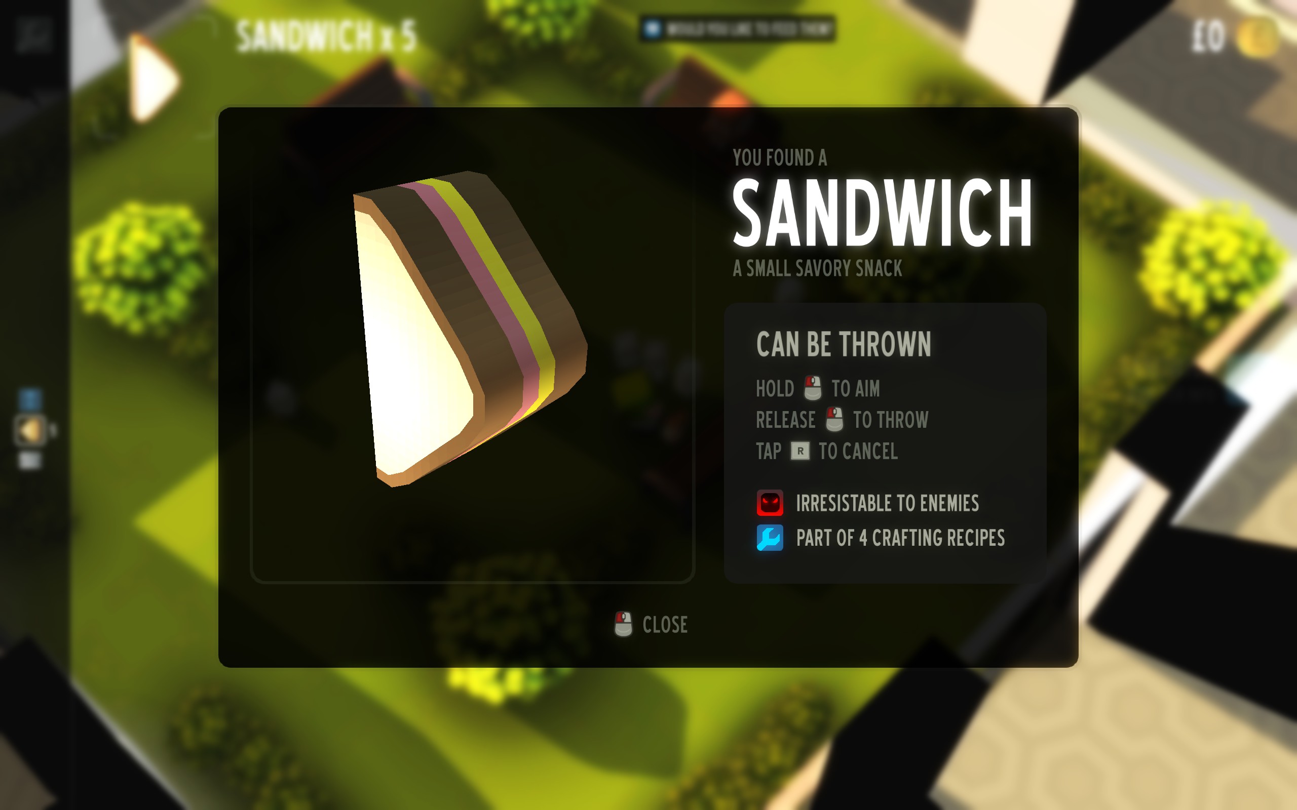 You have to be careful how you use these weapons however, as many of them won’t last. Melee weapons will break, other weapons will run out of ammo, and many gadgets have limited uses. Often the best strategy is to sneak or run past the zombies, which can be made easier if you throw out a sandwich or a sausage roll to distract them.