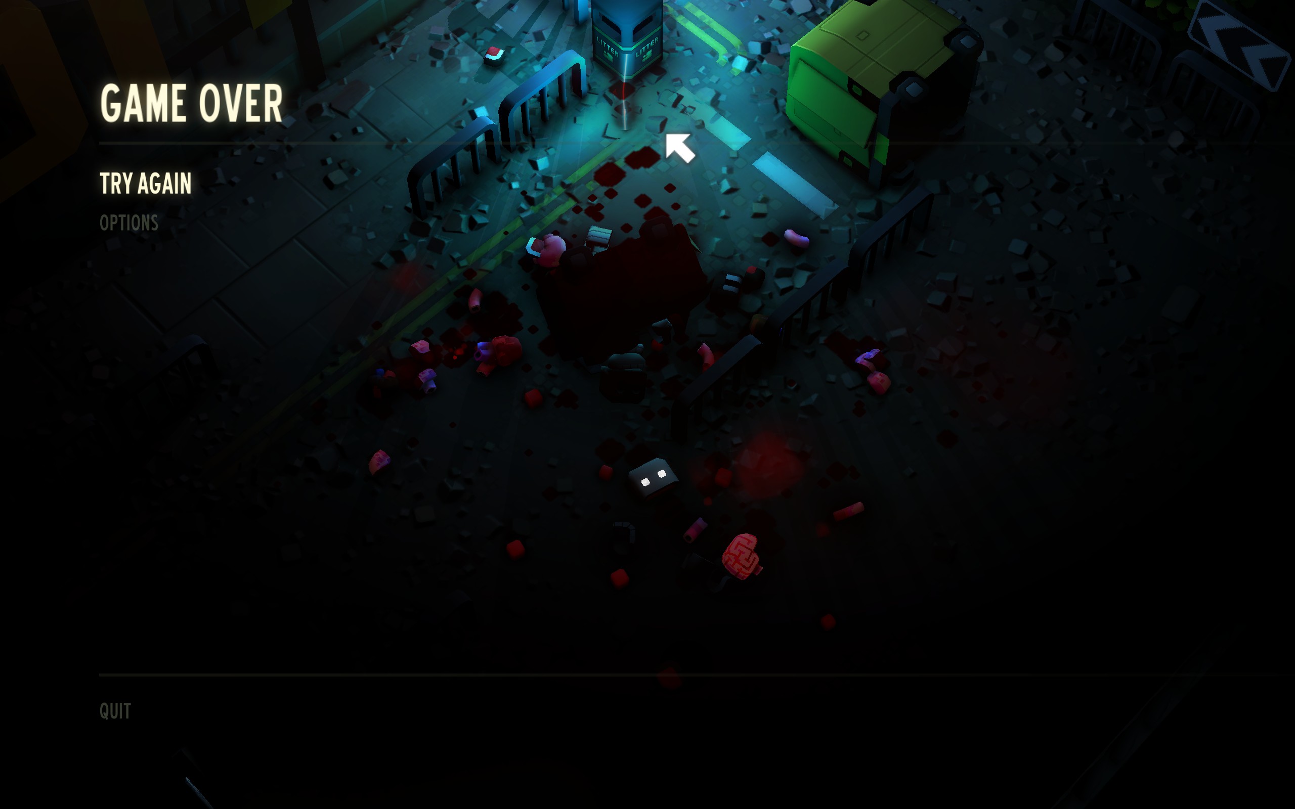 The first thing you see when you start Basingstoke is a warning about flashing lights and gore in the game. There’s an option to turn both of these features off if you’d rather have a less violent or less flashing lights. This is a nice feature, allowing the game to be accessible for more players.