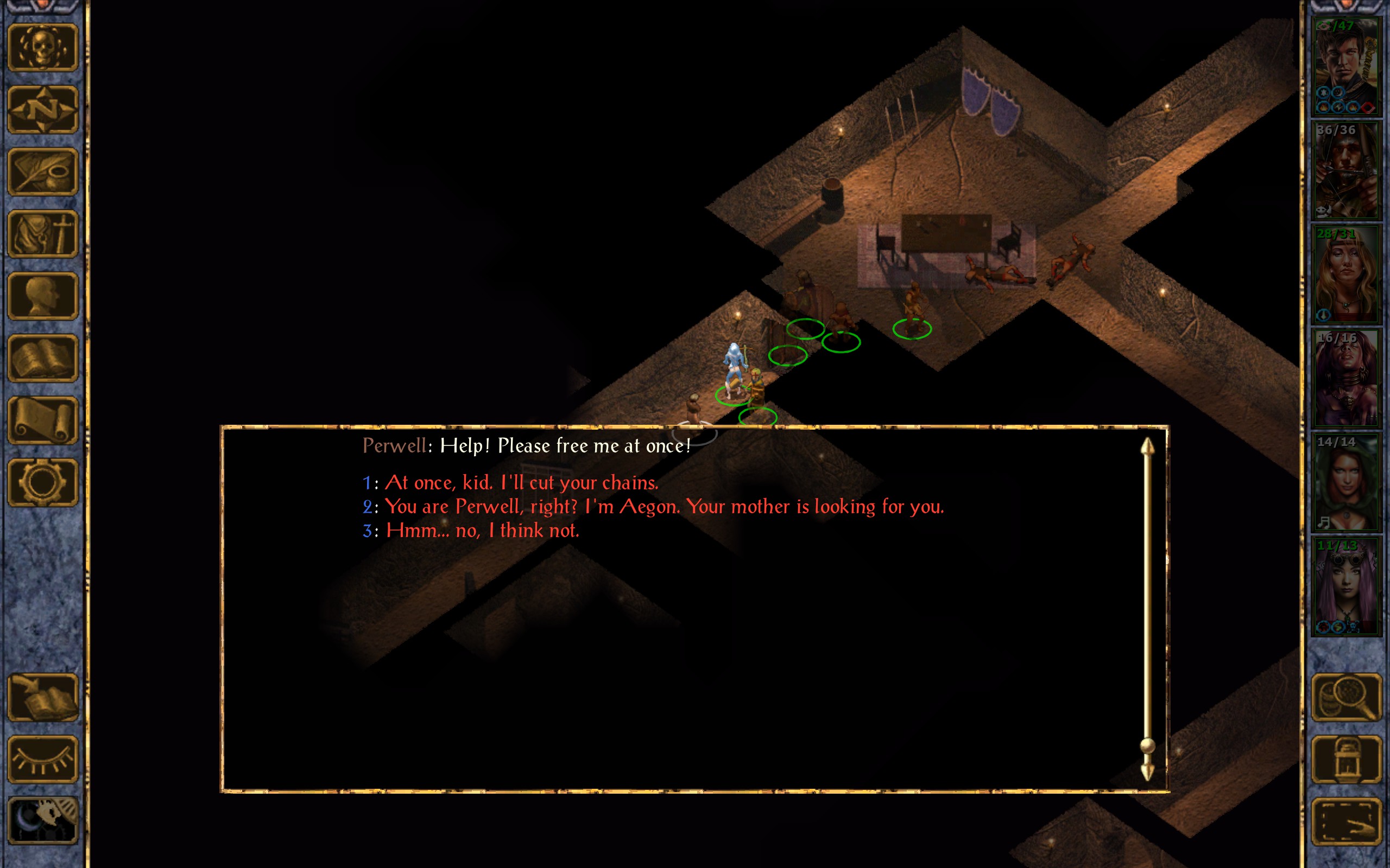Perwell: Oh, thank you, sir, thank you thank you thank you! The bandits kidnapped me to blackmail my mom. But now I can escape them!