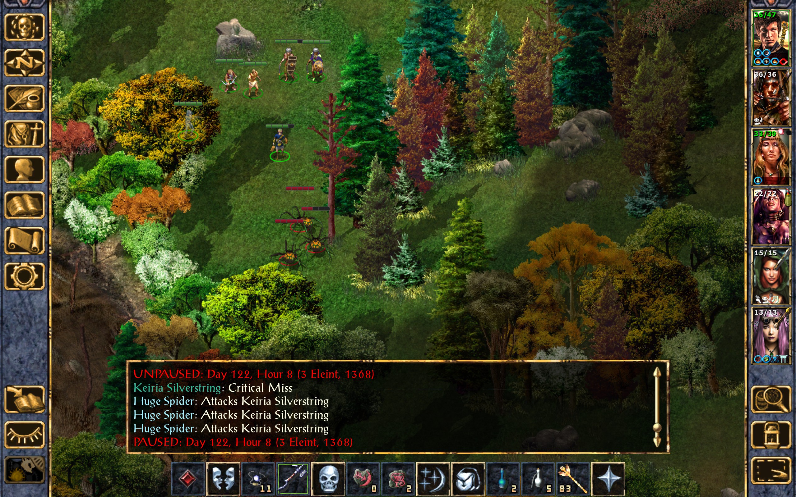 After nearly a day’s travel we find ourselves close to the spider’s lair. The forest isn’t kind to us and we are beset by giant spiders on this new day. Thankfully they have no web traps to slow us down.