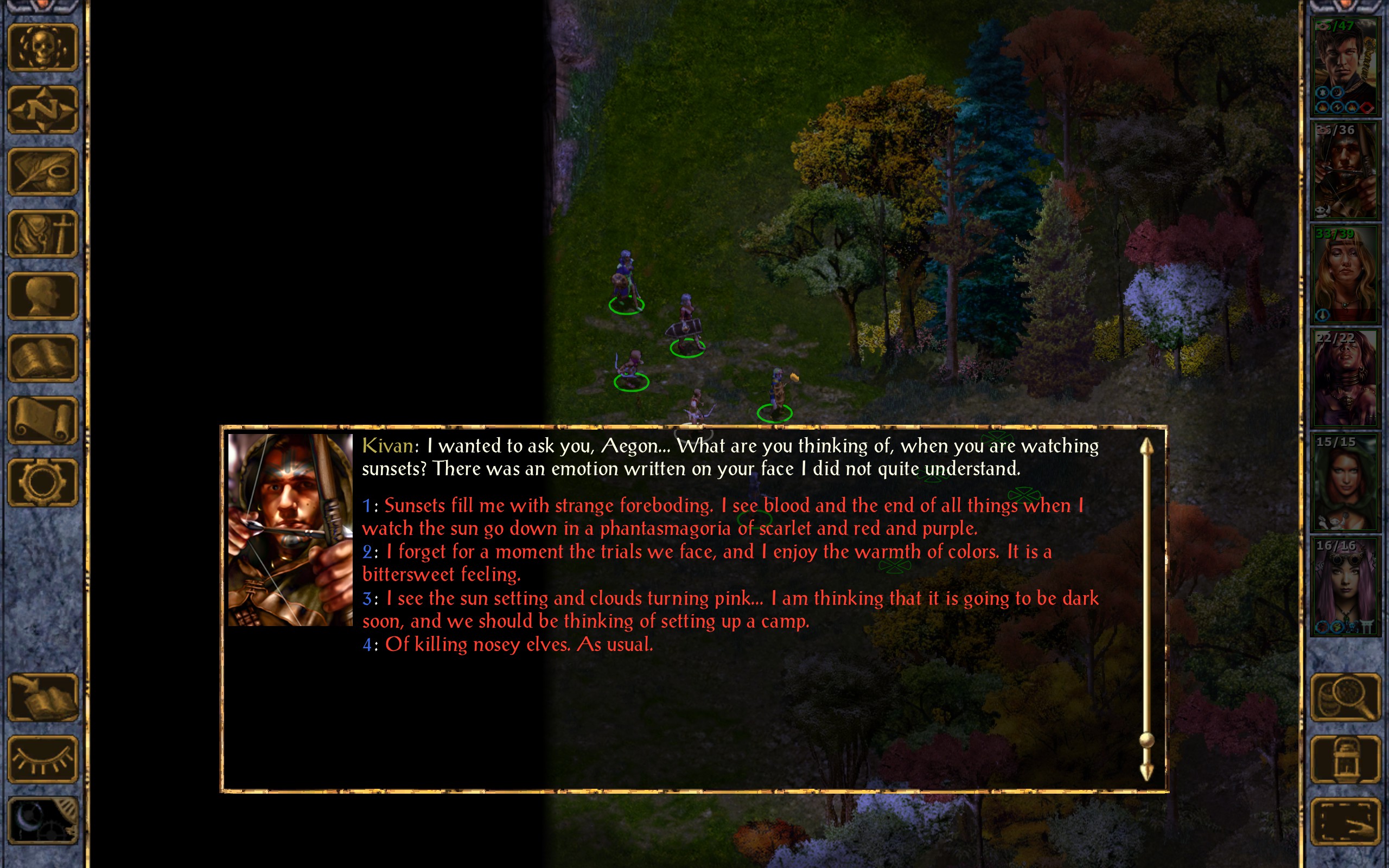 Aegon: We shall avenge Gorion’s and your Deheriana’s death. Maybe then the sunset will not be an ominous sight for you.