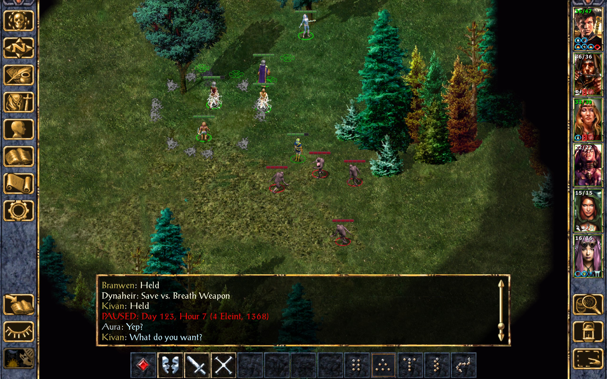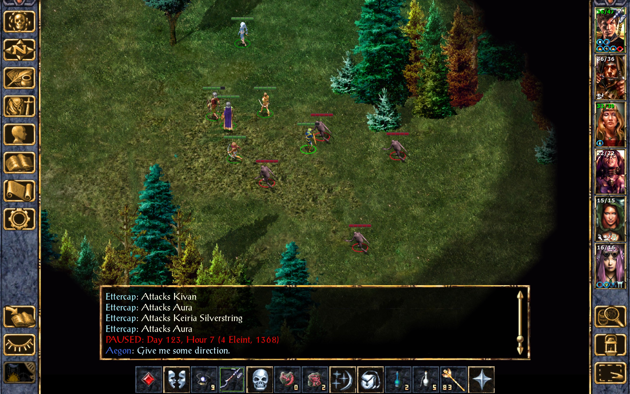 Kivan escapes from their webs and notches an arrow into his bow. It flies straight through the skull of one of the ettercaps.