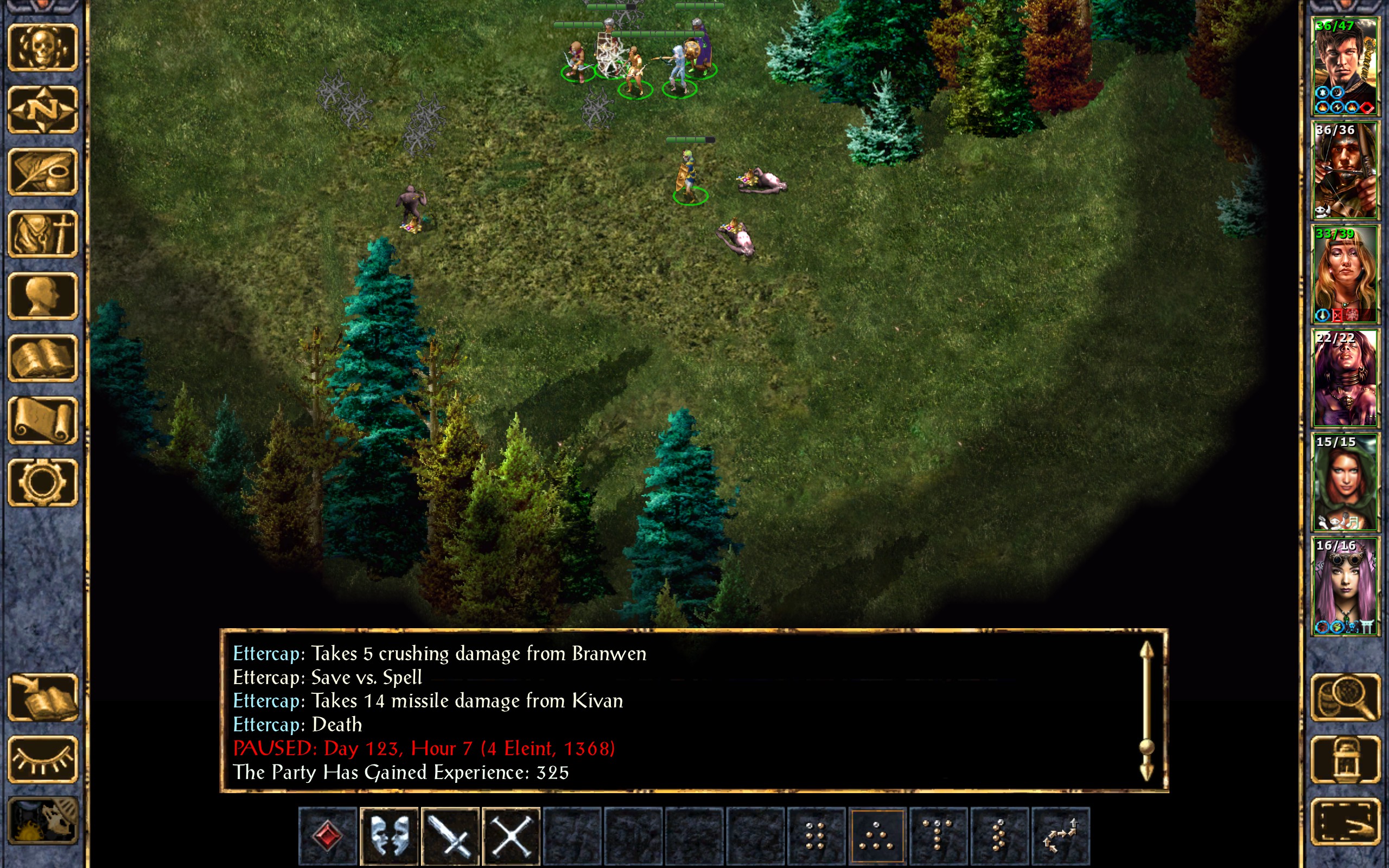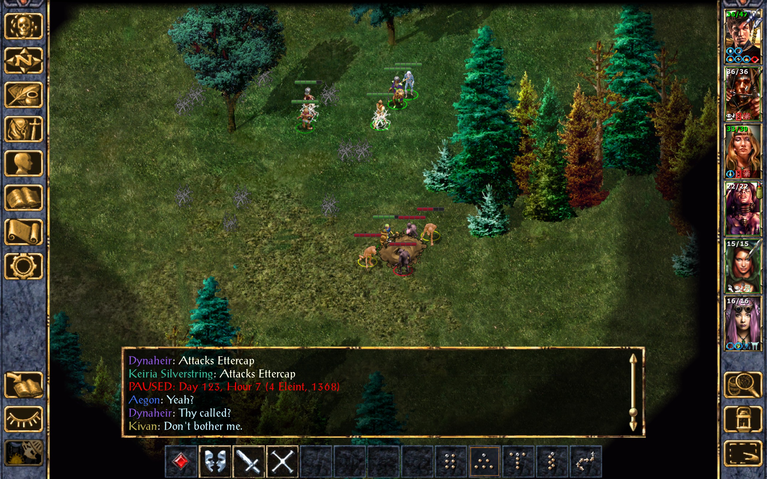 We chase down the ettercaps that are afeared, and Kivan gets another kill to his name.