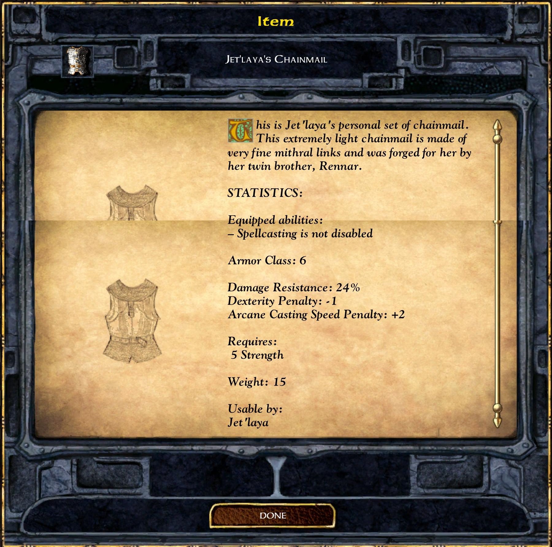 She wears a suit of chainmail crafted for her by her brother Rennar.