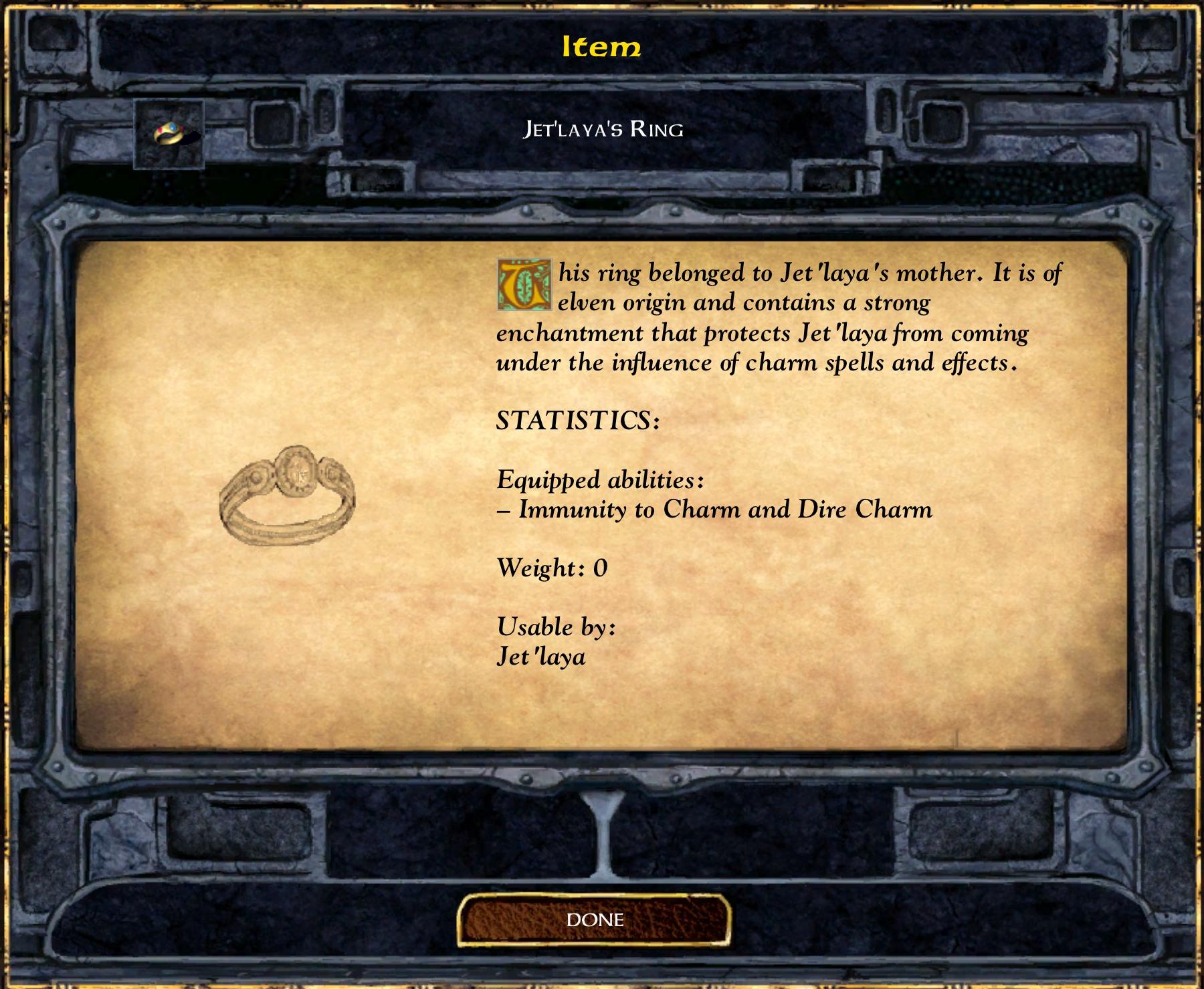She also shows me her ring, enchanted to protect her from succumbing to the will of others.