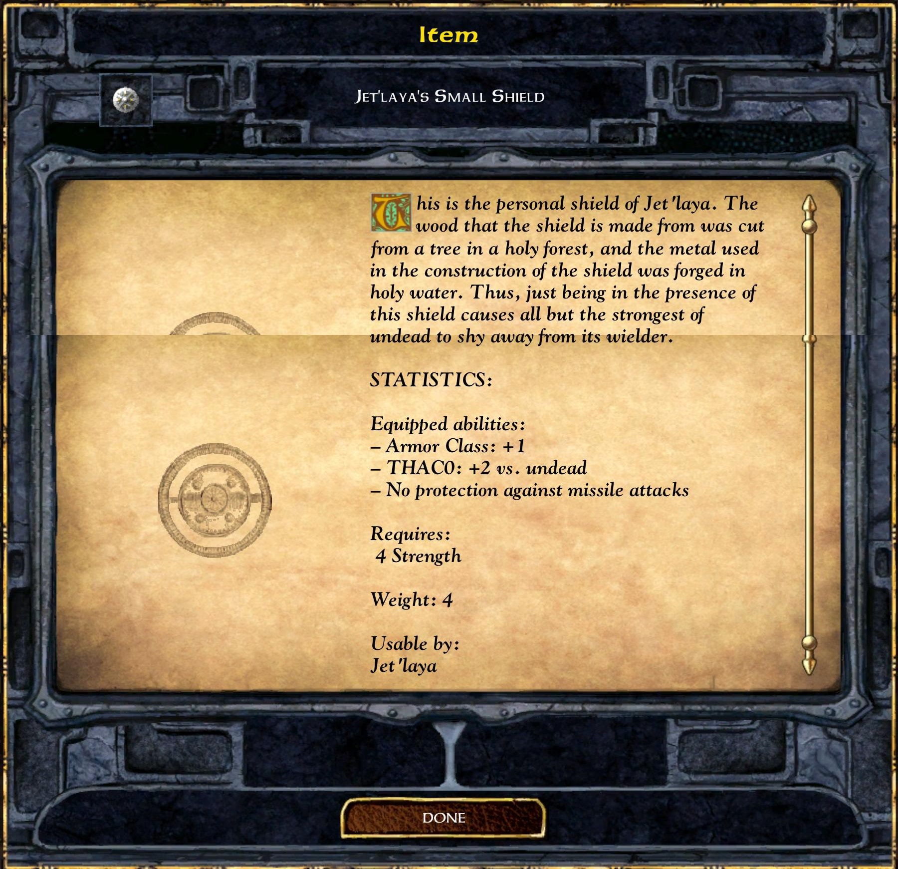 She wields a mace and a small shield that protects her from the undead.
