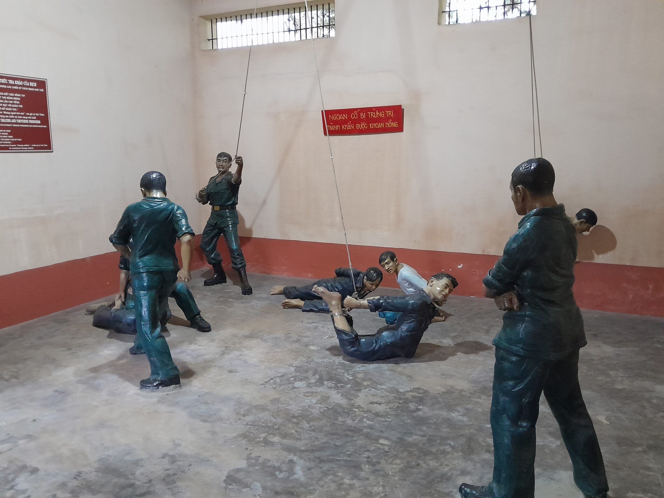 Inside the main square the museum immediately set the scene. Vietnamese teenagers being set upon by South Vietnamese guards armed with batons. Officially this was a re-education facility. In reality it was a place where they tortured children.