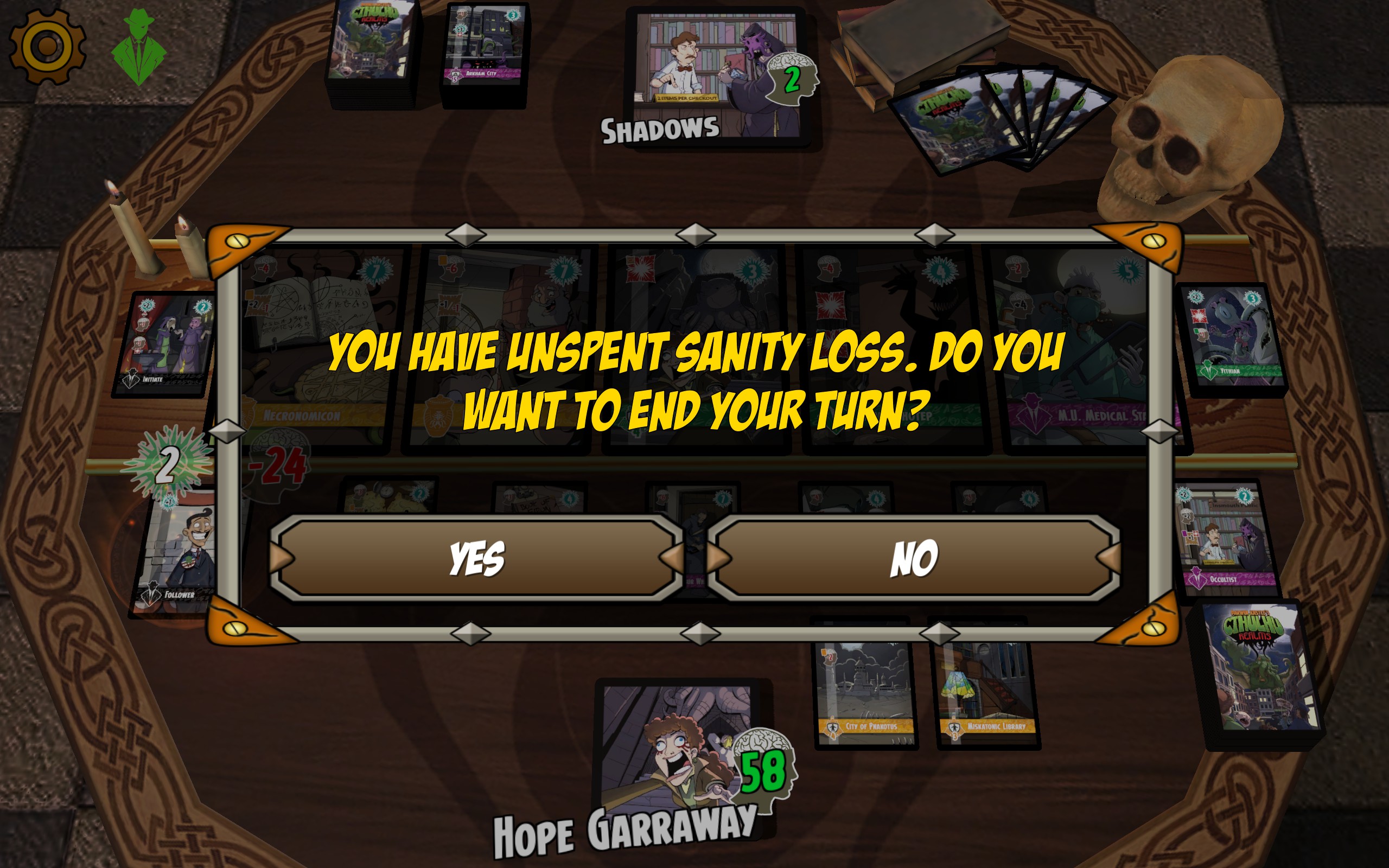 Since I was getting bored of losing I decided to try something different. Each level in Cthulhu Realms has 3 achievements, granted for winning a game under certain conditions. For example, one level will give you an achievement if you play three locations in a single turn, then go on to win the game.