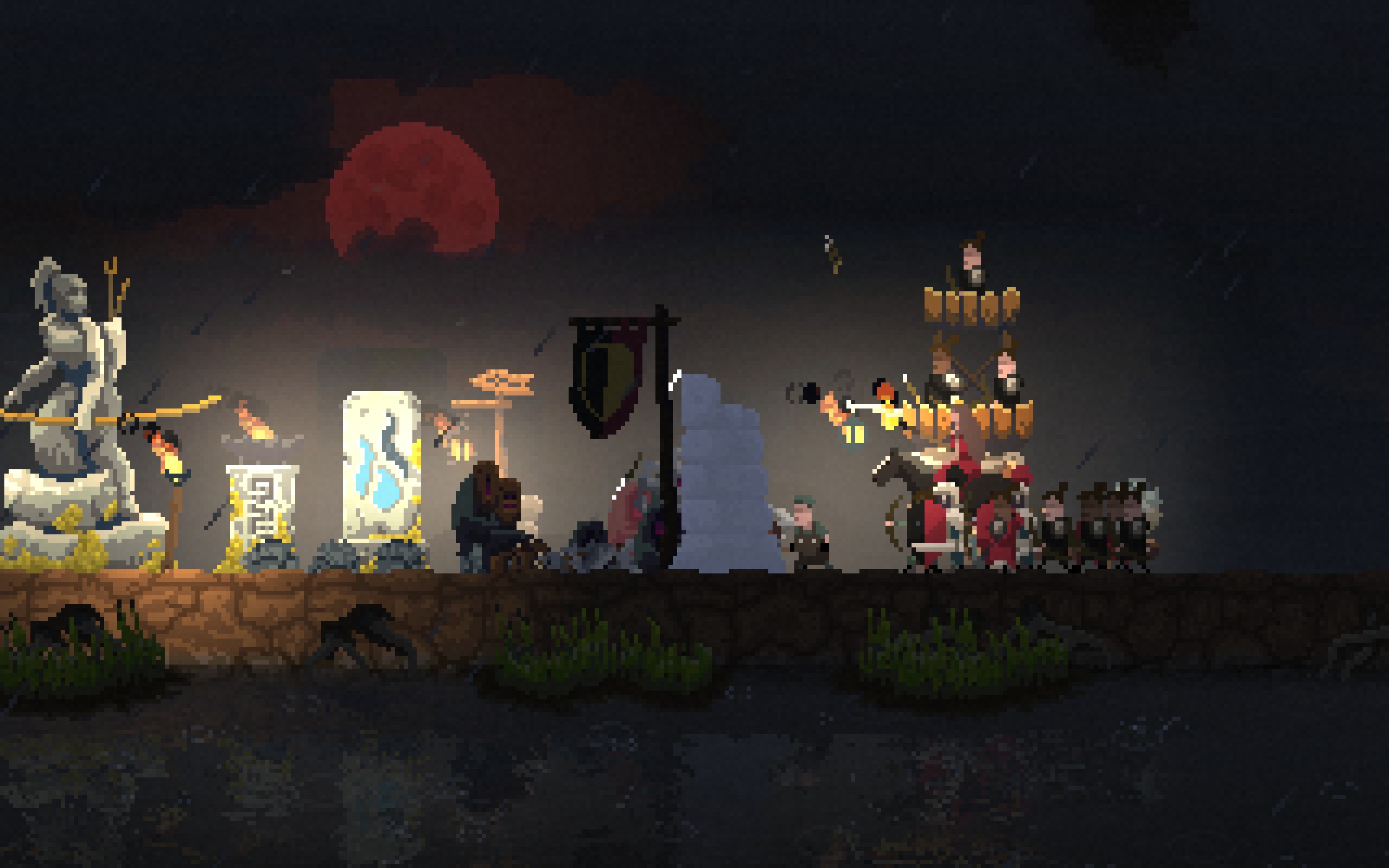 After 5 or so days you will experience your first Blood Moon. This event makes the Greed strong, and they will send their strongest force after you on this night. With archers at the ready you should be able to live through the onslaught.