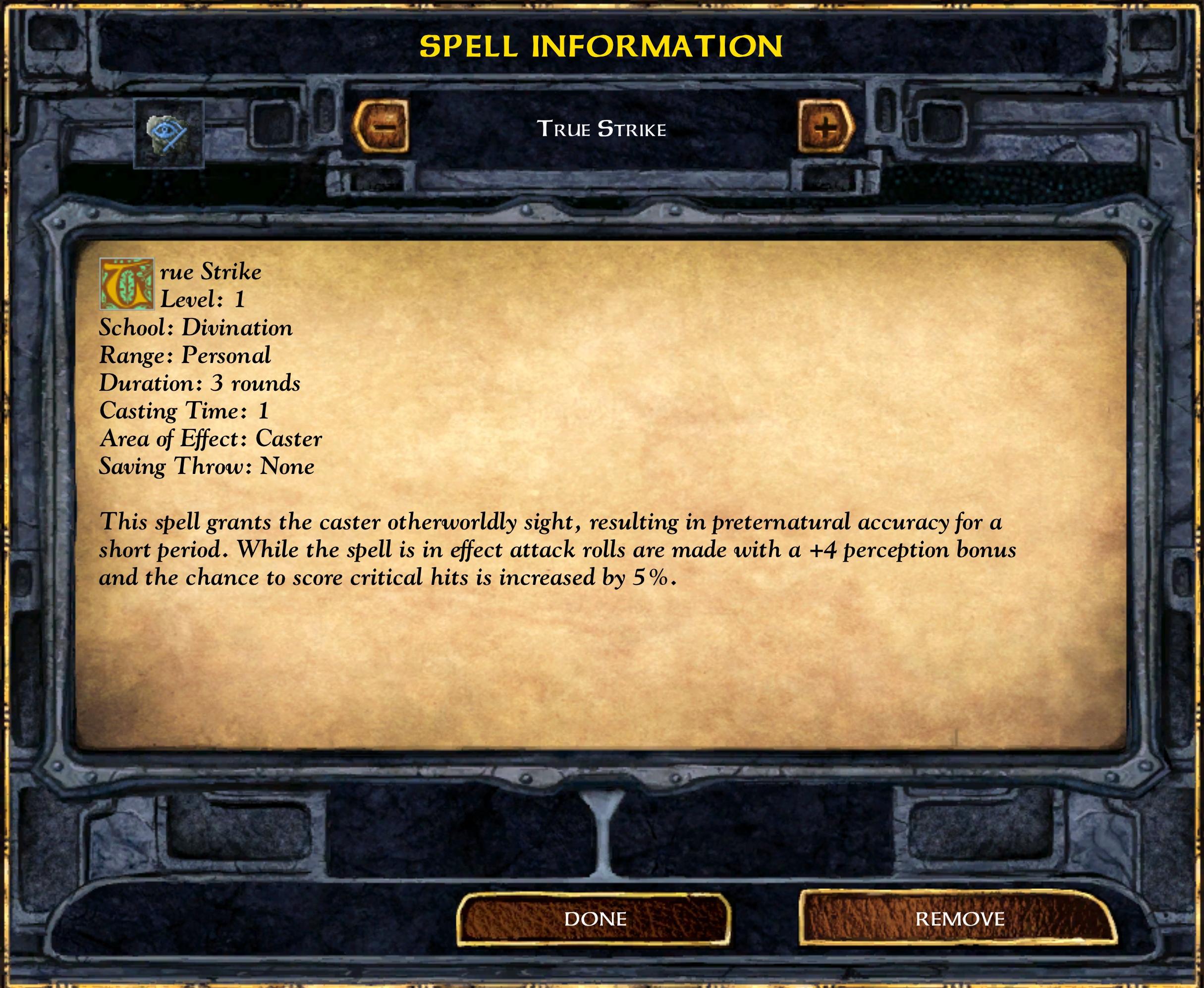 With a piercing weapon like his short sword, this spell can help Garrick hit often, and with an increased critical chance could potentially do a lot more damage.