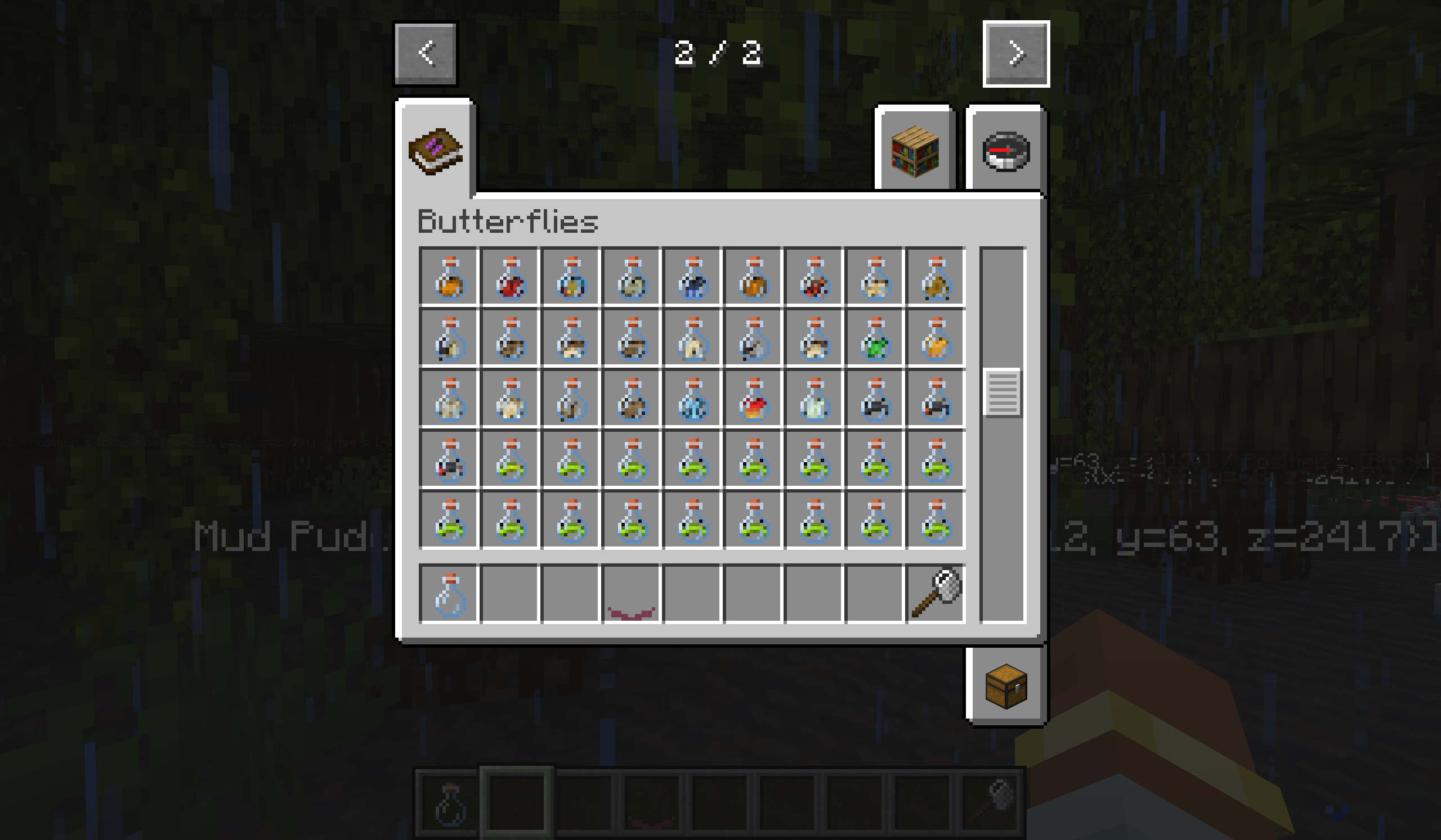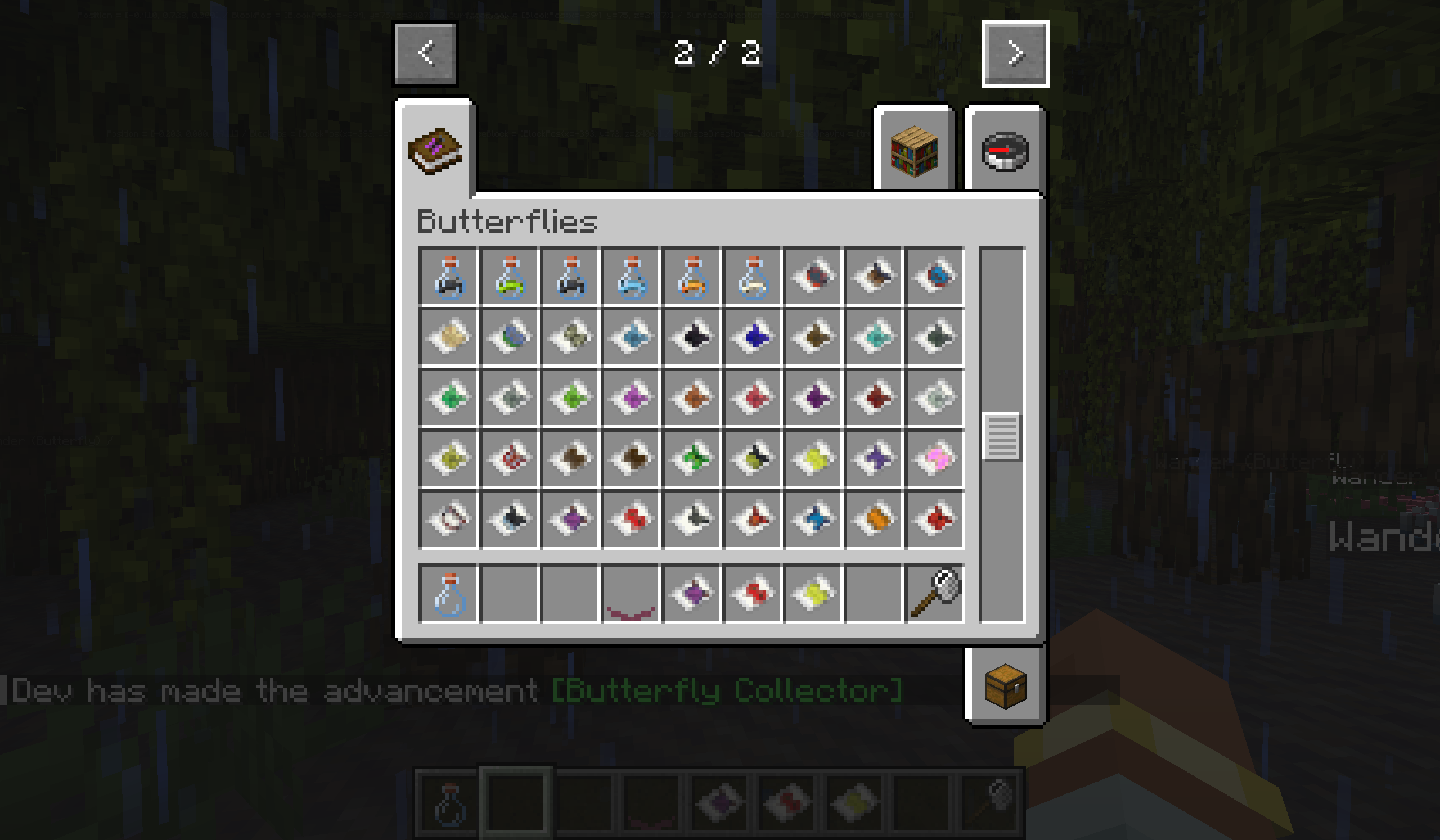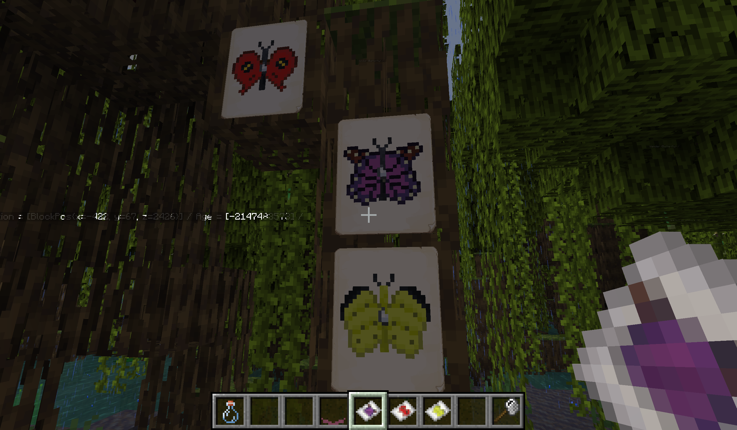 I haven’t made a release yet, because there is still one problem I need to solve. You may have noticed that I didn’t show any hummingbird moths. That’s because these textures don’t work with these new scripts, as the layout for their entity textures is different to others. So, they come out looking a bit of a mess:
