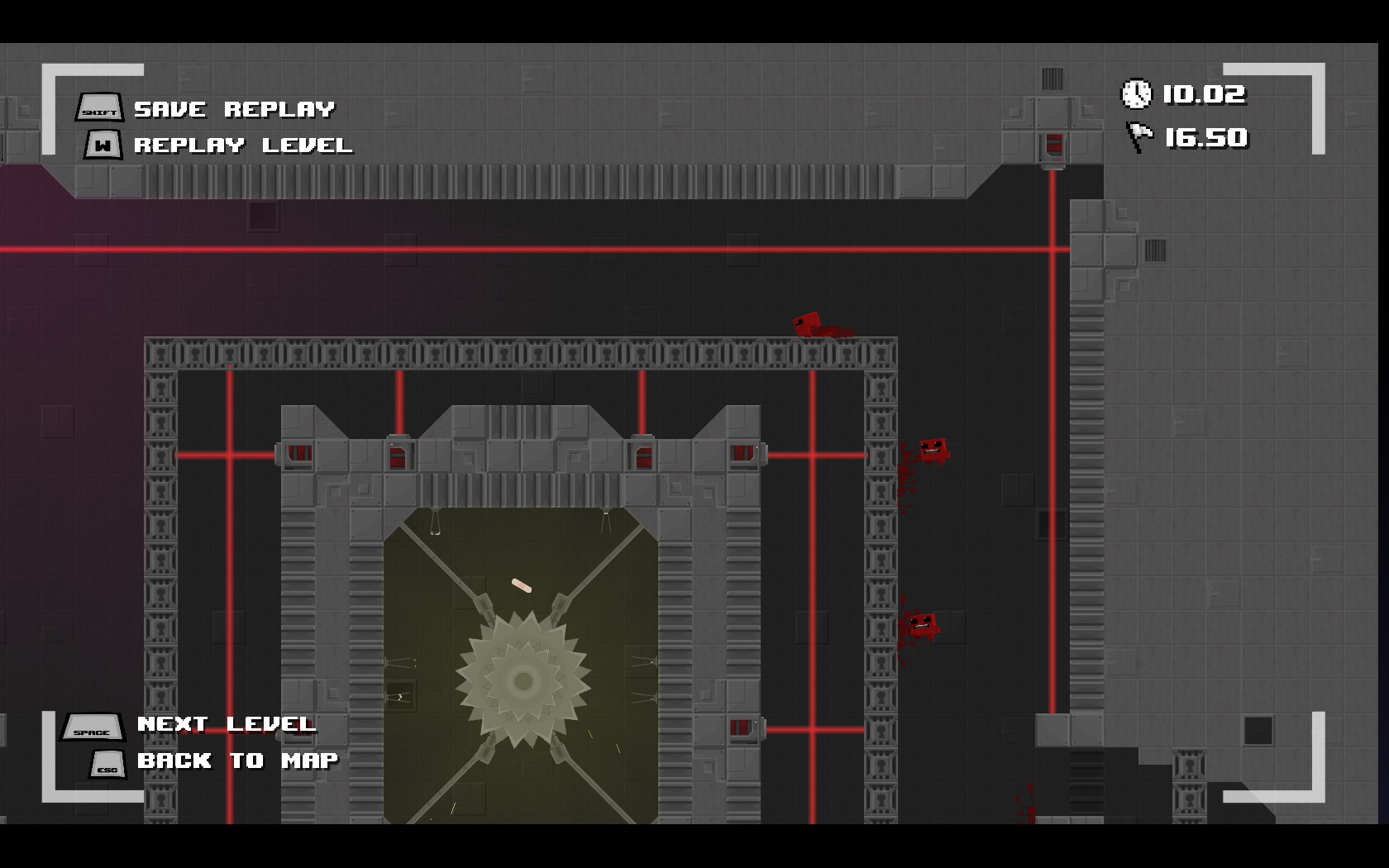 You will find yourself dying a lot. Whether falling out of the screen, or spraying blood everywhere as Meat Boy is ripped to shreds, you will get used to death. As soon as Meat Boy dies, the level restarts. By throwing you right back into the action like this, the game is encouraging you to keep playing, to practice.