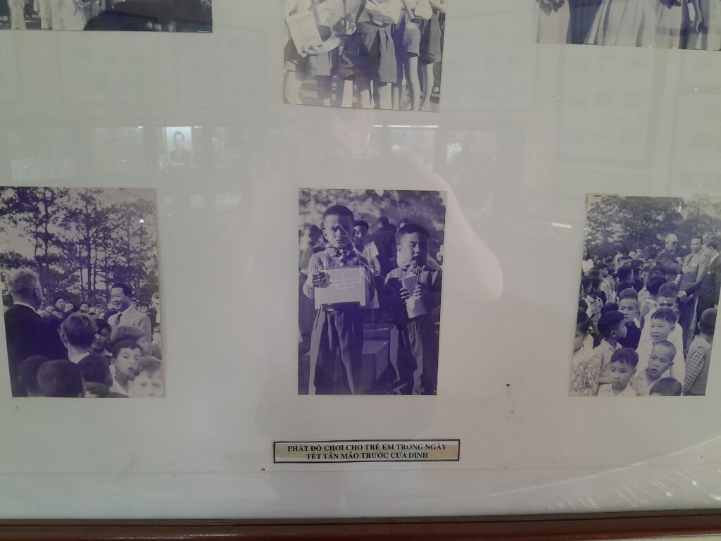 It cost me around 60,000 VND to get inside (less than $3). On the way in visitors are provided with coverings for their shoes to help maintain the floors of the palace. Each of the rooms inside have been preserved with furniture intact. Velvet ropes and signs remind visitors not to touch the antiques on display.