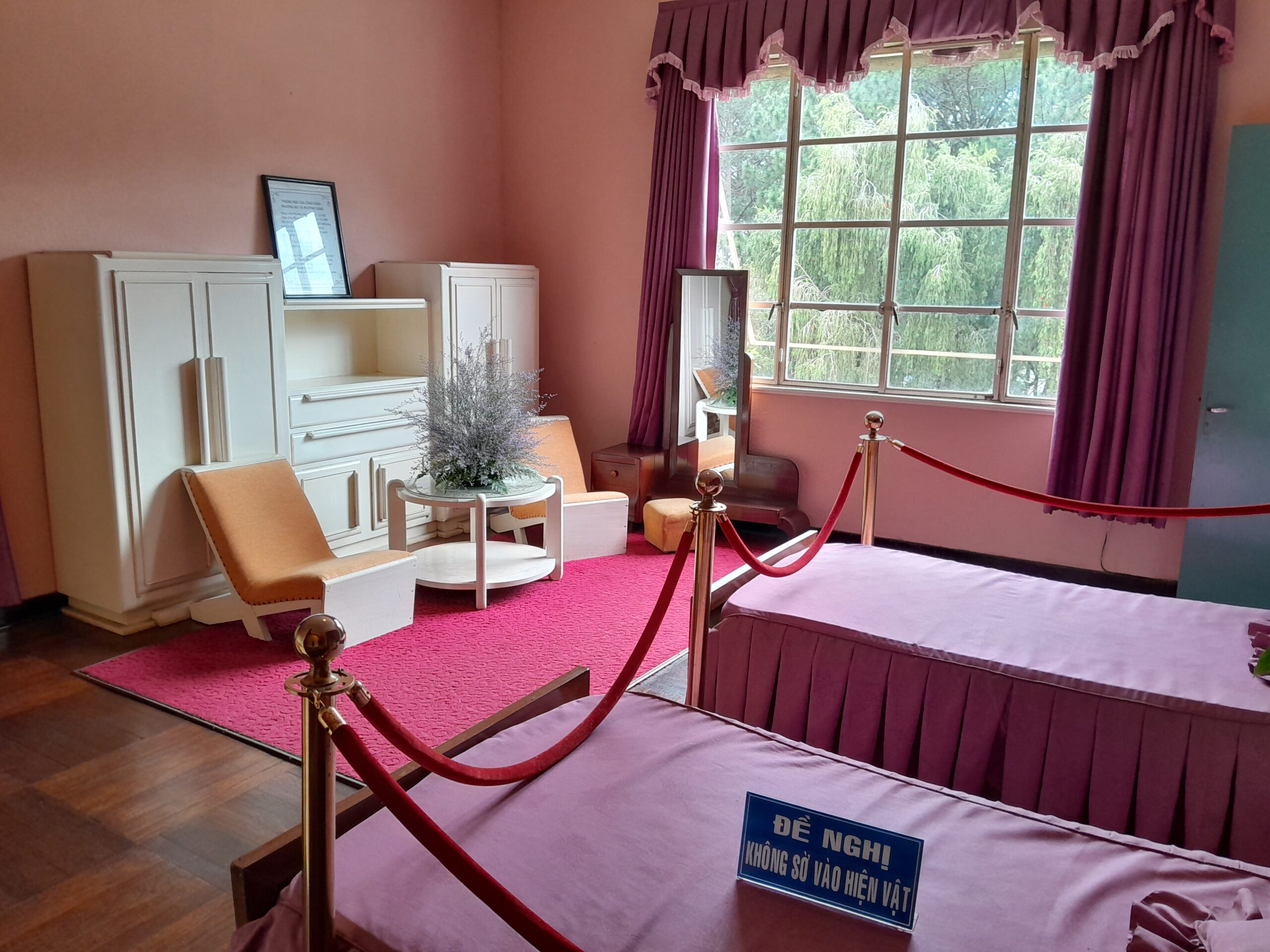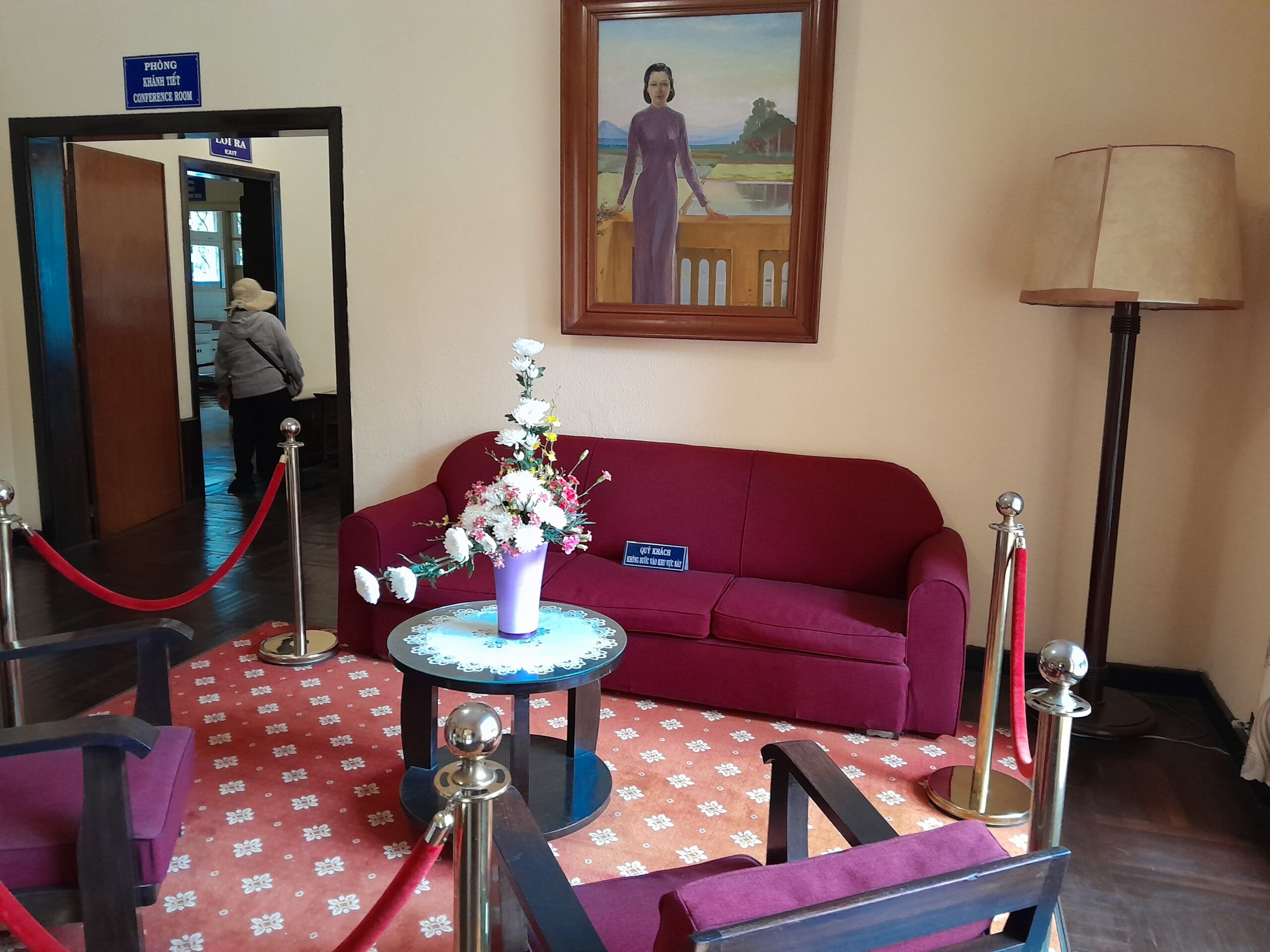 It cost me around 60,000 VND to get inside (less than $3). On the way in visitors are provided with coverings for their shoes to help maintain the floors of the palace. Each of the rooms inside have been preserved with furniture intact. Velvet ropes and signs remind visitors not to touch the antiques on display.