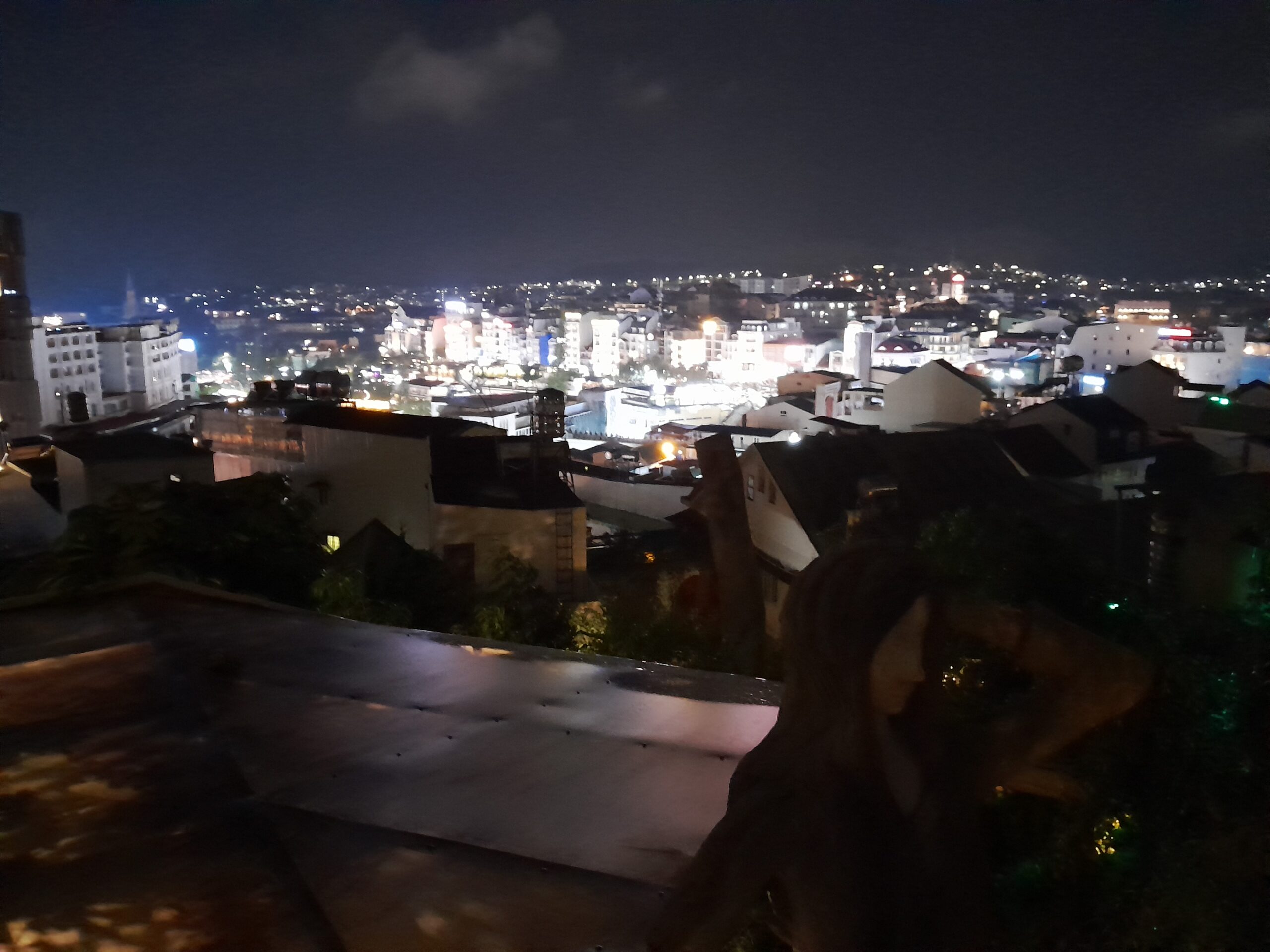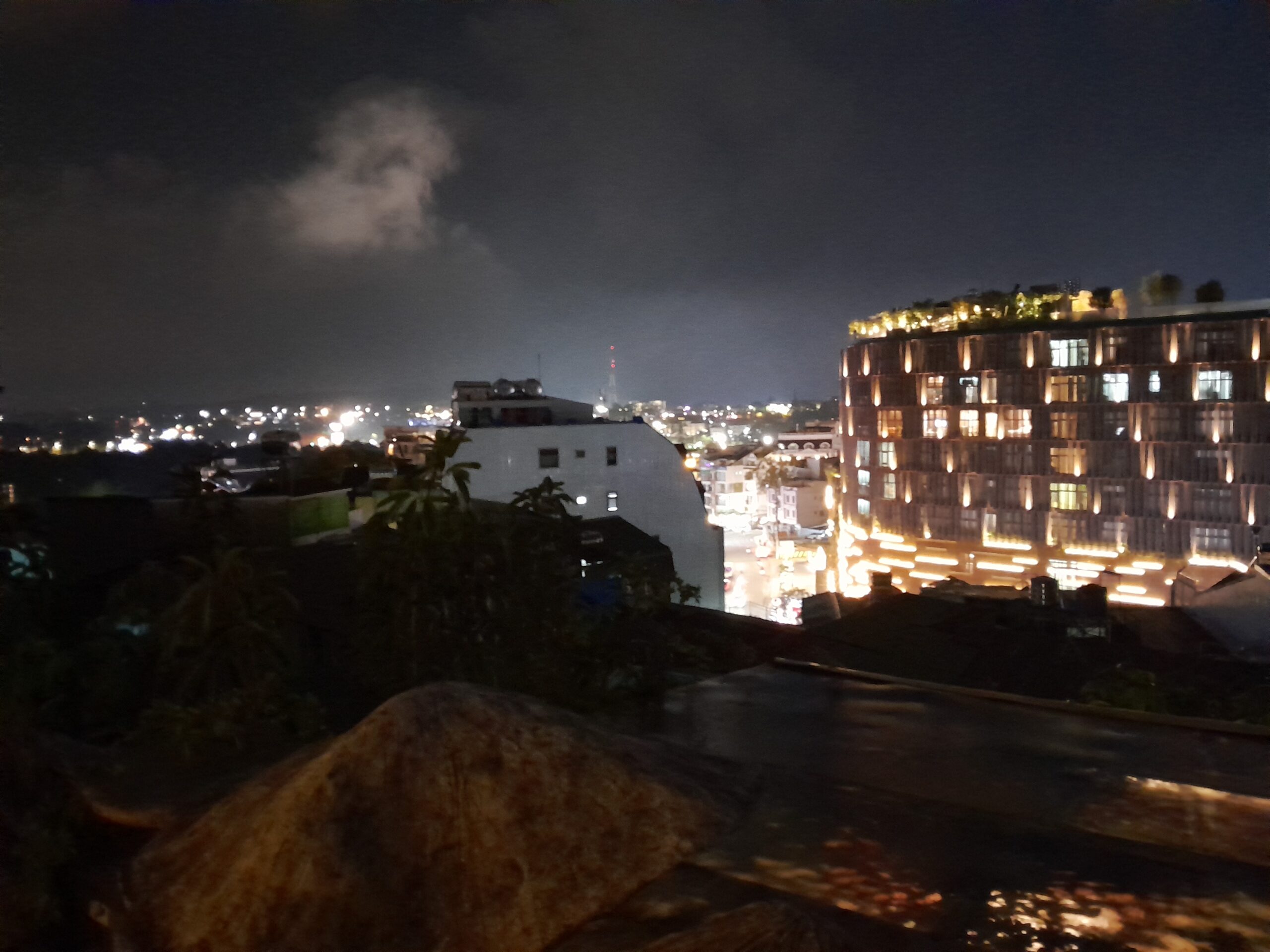The maze extends even here on these rooftops, an intricate puzzle of levels and passageways. Pressing onward to the summit, I found the highest point, where the city’s lights draped themselves in a glittering cloak beneath the night sky. From this vantage, I could trace the market I had wandered earlier, a vibrant heartbeat pulsing softly in the distance.