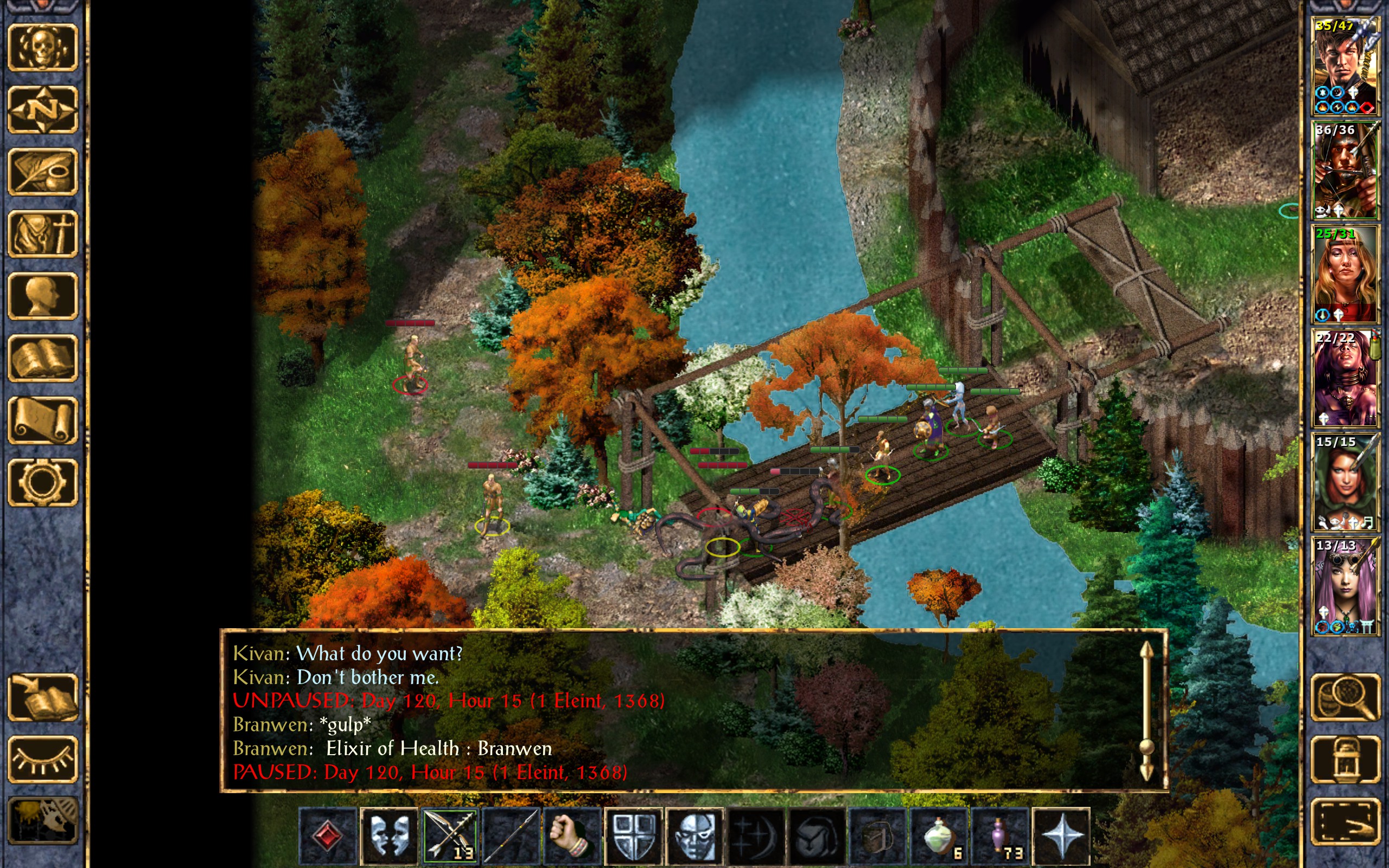 We return to the bridge to find the last druid cowering in fear. Kivan quickly launches two arrows into him and he is no more.
